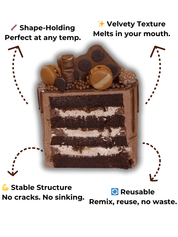 A simple and quick frosting and coating method guarantees a stable, long-lasting cake that you can easily transport or store without worrying about distortion or cracks.